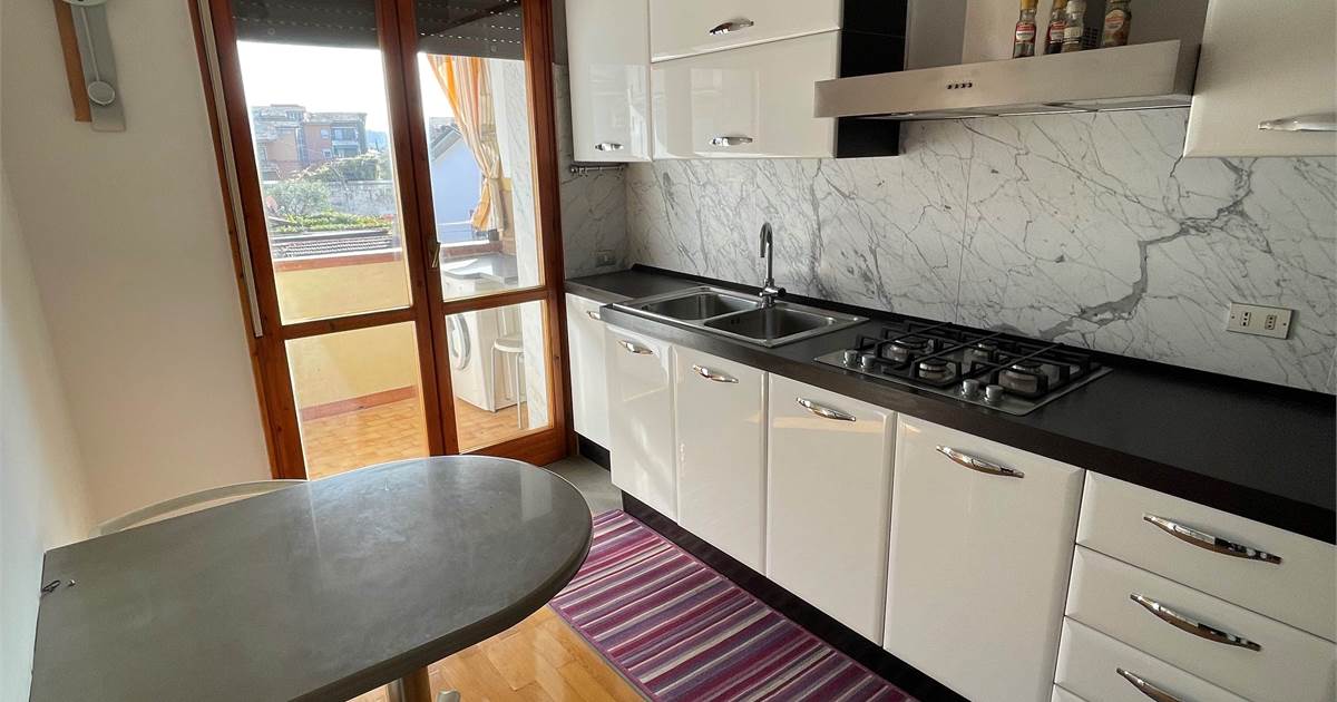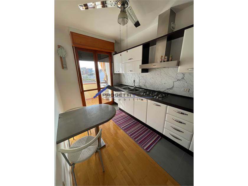 ingresso in comodo soggiorno, zona pranzo, ripostiglio, primo servizio, n.2 camere da letto, cucina abitabile con terrazzo verandato con zona lavanderia, secondo servizio con vasca e doccia.