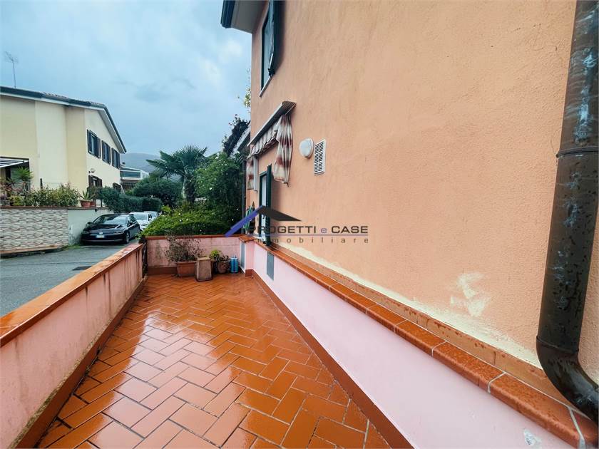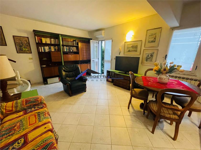 al piano terra troviamo l'ingresso indipendente da vialetto di accesso, spaziosa corte pavimentata e già provvista di tenda da sole per poter godere di momenti in tranquillità, ingresso nel soggiorno con zona pranzo, cucinotto separato, locale lavanderia/bagno, scala di accesso al piano primo due camere da letto di cui una con terrazzo e tenda da sole, bagno con doccia, scala a chiocciola che conduce alla mansarda, grande open space da adibire a terza camera oppure studio.