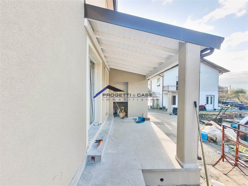 ingresso da ampio porticato , soggiorno con cucina a vista, 2 camere da letto, spazioso bagno, ripostiglio e locale tecnico. Ottima esposizione sud/ovest .Impianto di riscaldamento a pavimento integrato con pompe di calore per acqua calda sanitaria e sistema di raffrescamento a split localizzati, con funzionalità differenziata, che garantisce l’efficienza energetica, il risparmio economico, la gestione flessibile delle stagionalità, e l’aderenza alle normative future sull'edilizia abitativa. Classe energetica A+++