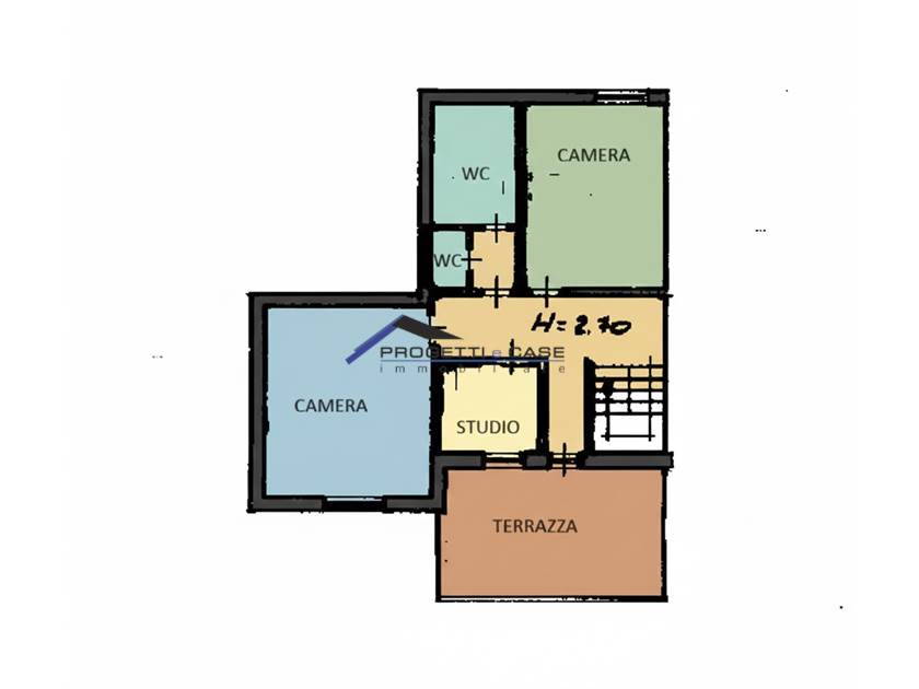 Piano superiore INTERAMENTE ABITABILE, dove troviamo 2 camere matrimoniali, uno studio ed un ampio bagno con vasca e doccia oltre ad una terrazza.
